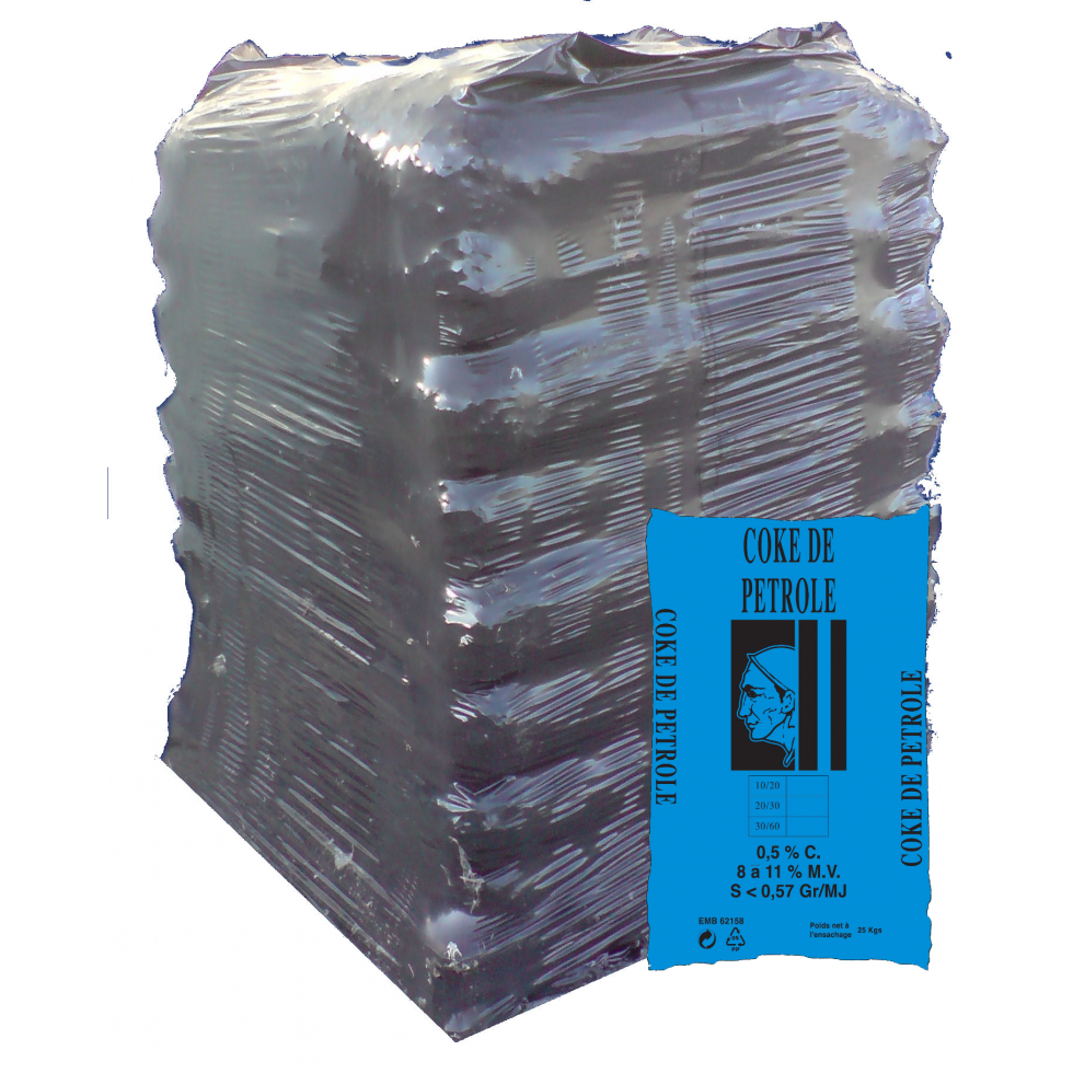 Startseite Unsere besten Produkte COKE PETROLE 30/60 HALBE PALETTE VON 25 BAGS ZU 20 KG | 20 kg – Brennholz – Lieferung in 3–15 Tagen